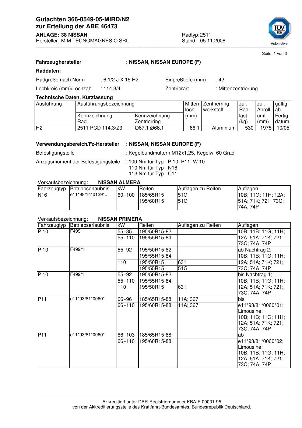 • Stimmt die KBA-Nummer auf der Felge mit diesem Dokument überein?