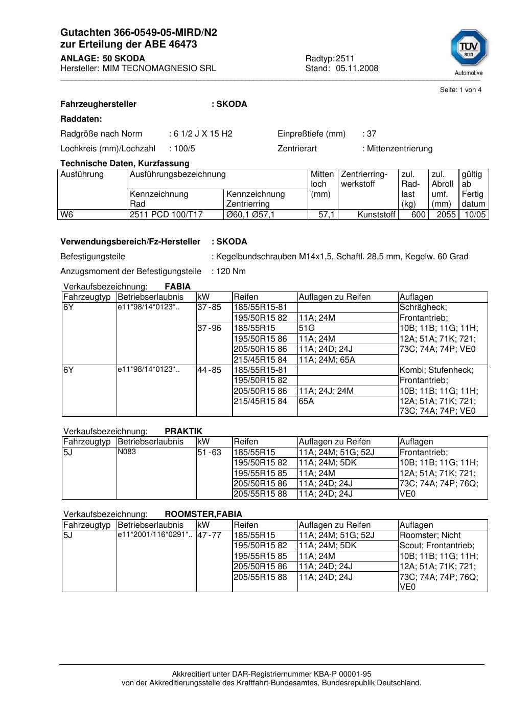 • Stimmt die KBA-Nummer auf der Felge mit diesem Dokument überein?