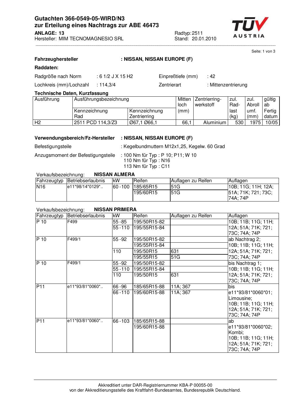 • Stimmt die KBA-Nummer auf der Felge mit diesem Dokument überein?