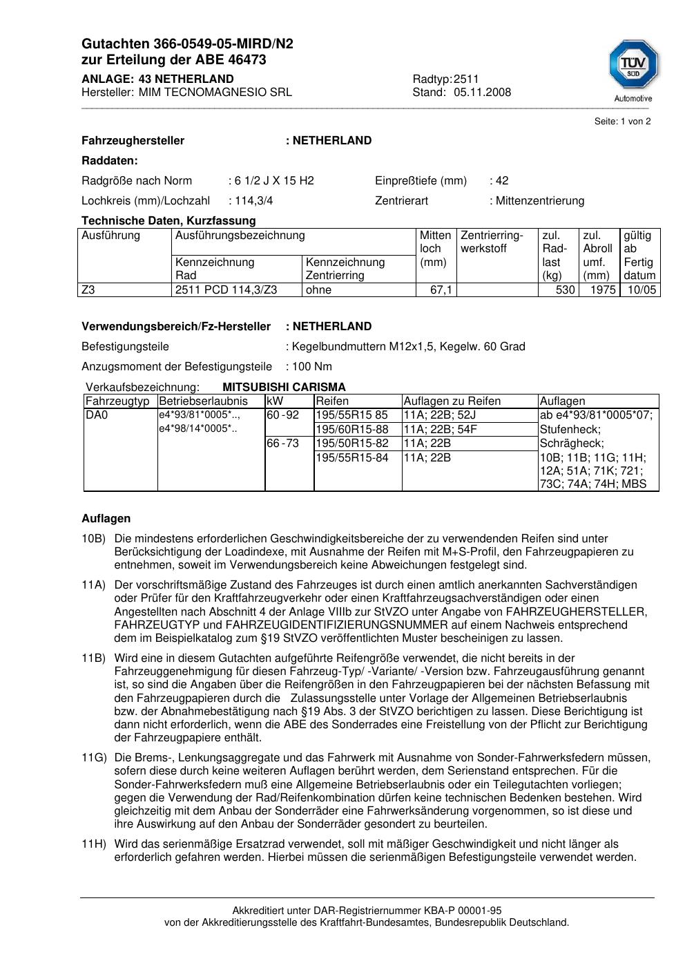 • Stimmt die KBA-Nummer auf der Felge mit diesem Dokument überein?