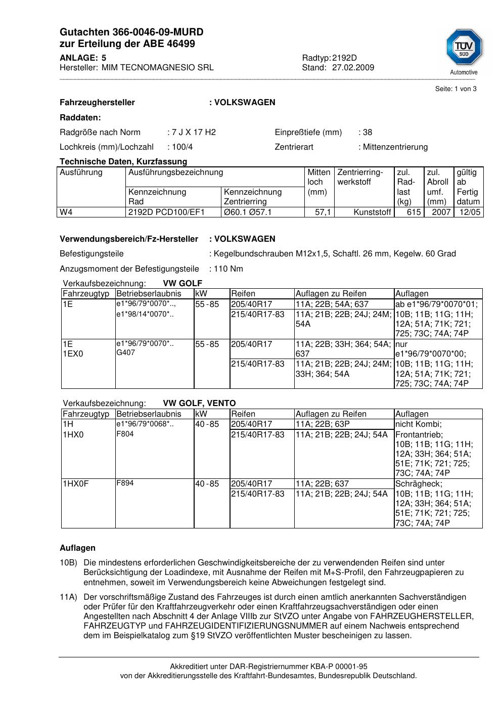 • Stimmt die KBA-Nummer auf der Felge mit diesem Dokument überein?