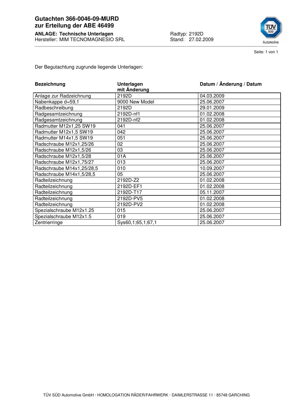 • Stimmt die KBA-Nummer auf der Felge mit diesem Dokument überein?