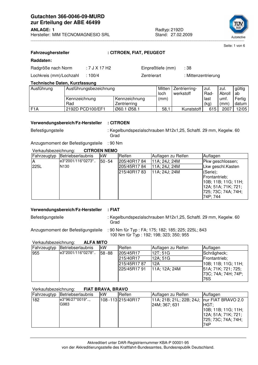 Dieses abe gehört zur Felge MIM 2192D in ET0 mit KBA 46499. Die Seite ist dafür gedacht, dass du schnell prüfen kannst, ob KBA, Design und Größe zu deiner Felge passen und danach direkt das richtige PDF lädst.