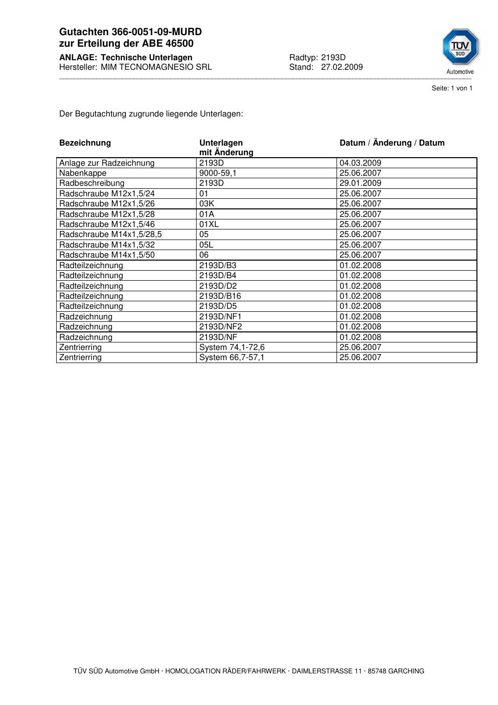 Dieses abe der Marke MIM stammt vom jeweiligen Hersteller, Importeur oder einer Prüforganisation. Felgengutachten.de beansprucht hieran keine eigenen Urheber-, Nutzungs- oder sonstigen Schutzrechte. Soweit das Dokument urheber- oder leistungsschutzrechtlich geschützt ist, verbleiben die Rechte beim jeweiligen Rechteinhaber. Die Bereitstellung erfolgt ausschließlich zu Informationszwecken für Endnutzer, z. B. zur Vorlage bei Prüfstellen oder zur eigenen Fahrzeugdokumentation.