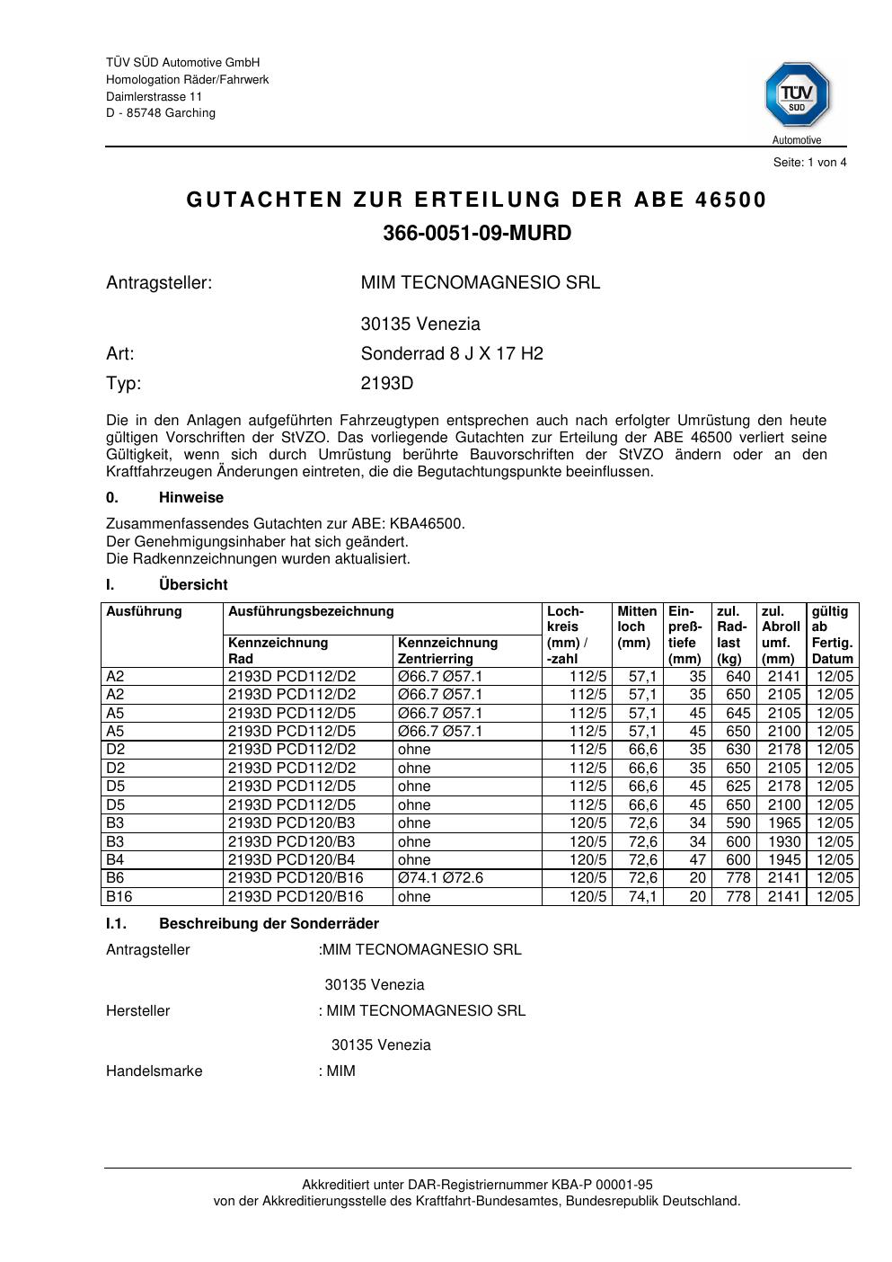 Dieses abe der Marke MIM stammt vom jeweiligen Hersteller, Importeur oder einer Prüforganisation. Felgengutachten.de beansprucht hieran keine eigenen Urheber-, Nutzungs- oder sonstigen Schutzrechte. Soweit das Dokument urheber- oder leistungsschutzrechtlich geschützt ist, verbleiben die Rechte beim jeweiligen Rechteinhaber. Die Bereitstellung erfolgt ausschließlich zu Informationszwecken für Endnutzer, z. B. zur Vorlage bei Prüfstellen oder zur eigenen Fahrzeugdokumentation.