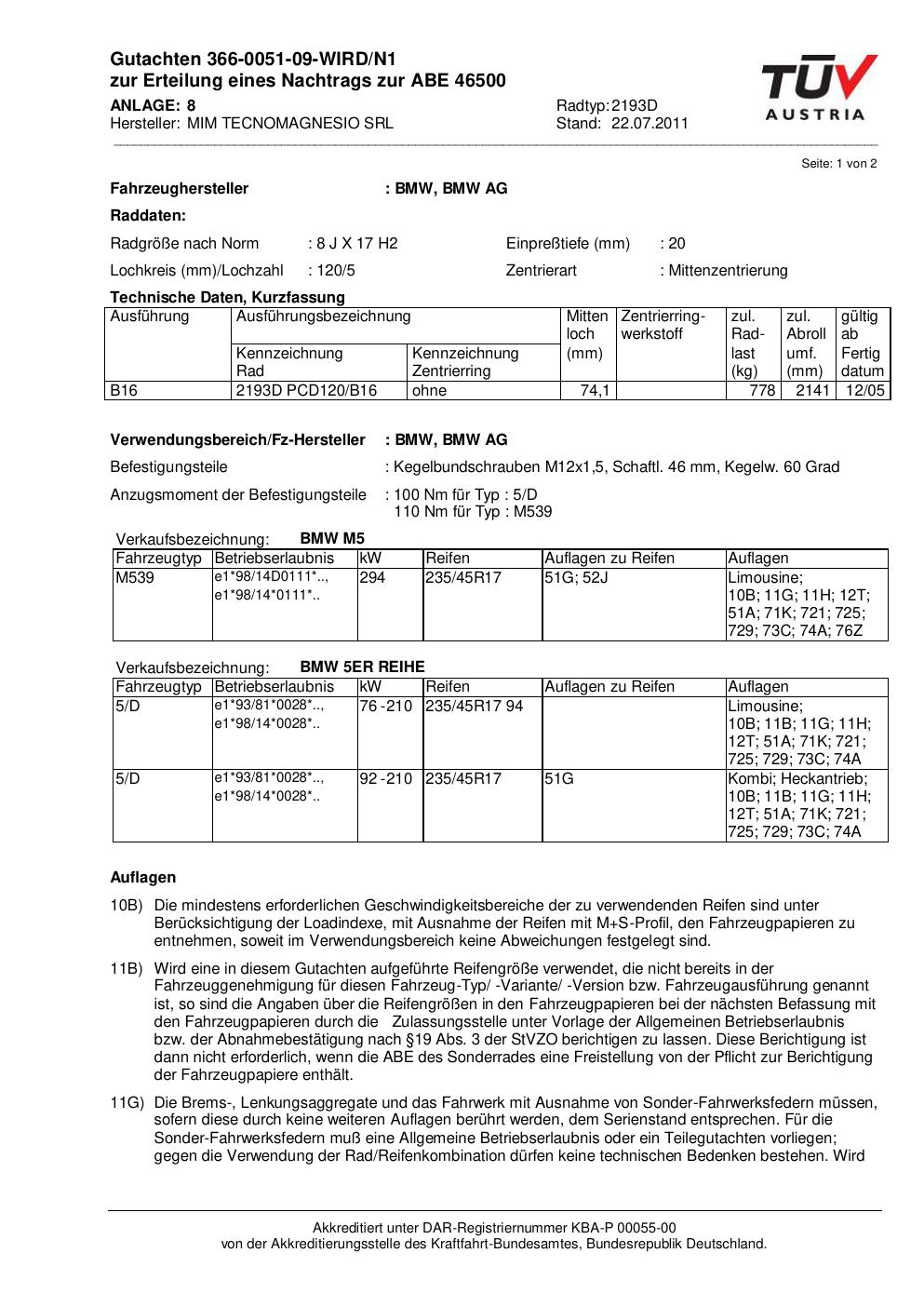 Dieses abe der Marke MIM stammt vom jeweiligen Hersteller, Importeur oder einer Prüforganisation. Felgengutachten.de beansprucht hieran keine eigenen Urheber-, Nutzungs- oder sonstigen Schutzrechte. Soweit das Dokument urheber- oder leistungsschutzrechtlich geschützt ist, verbleiben die Rechte beim jeweiligen Rechteinhaber. Die Bereitstellung erfolgt ausschließlich zu Informationszwecken für Endnutzer, z. B. zur Vorlage bei Prüfstellen oder zur eigenen Fahrzeugdokumentation.