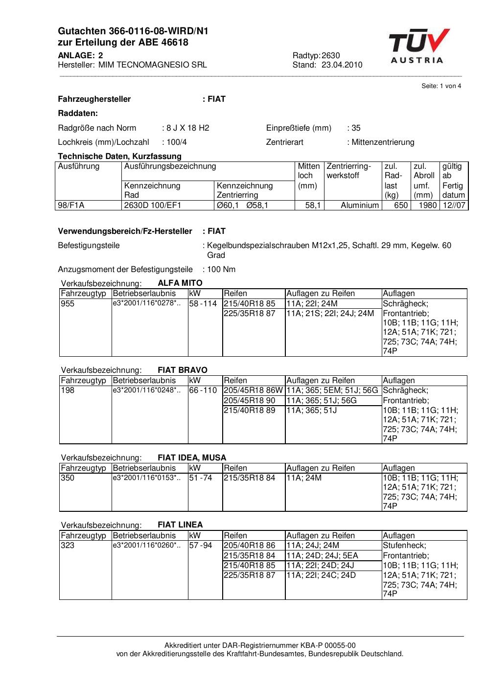 • Stimmt die KBA-Nummer auf der Felge mit diesem Dokument überein?