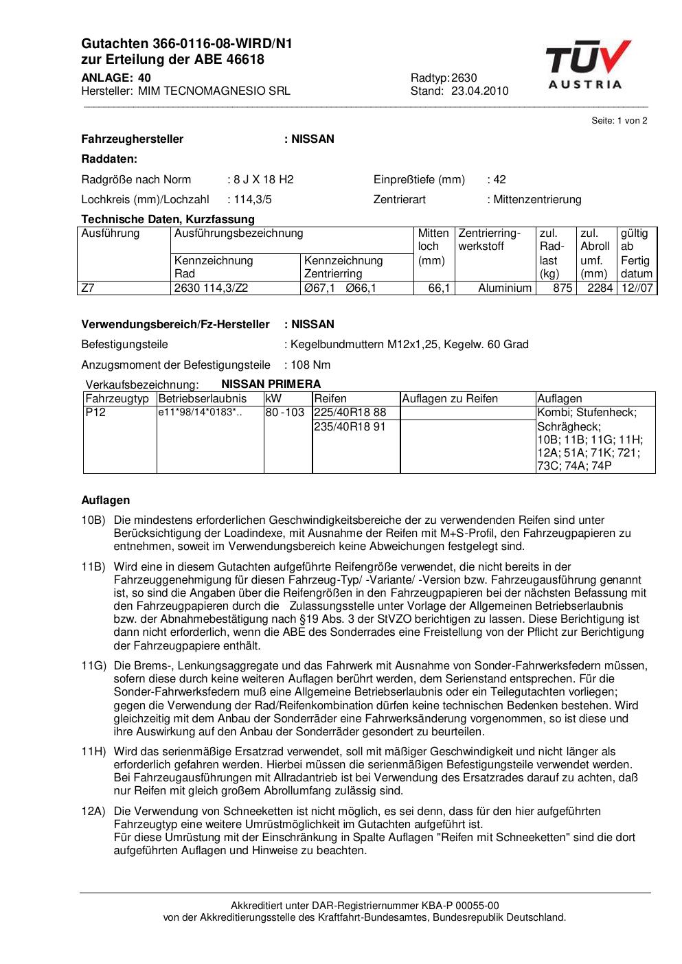 • Stimmt die KBA-Nummer auf der Felge mit diesem Dokument überein?