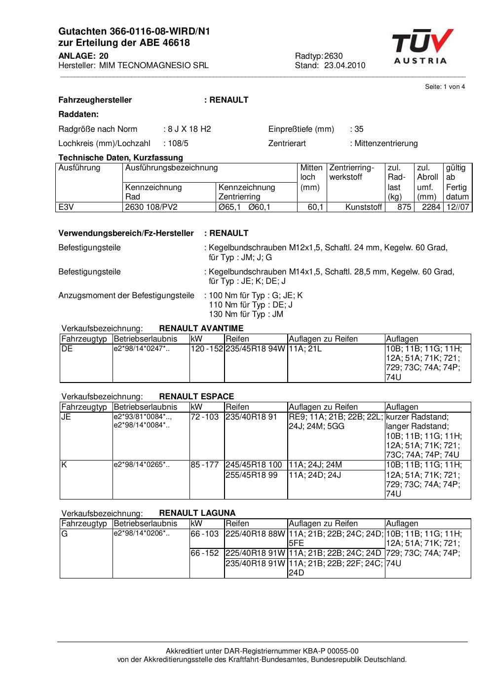 • Stimmt die KBA-Nummer auf der Felge mit diesem Dokument überein?