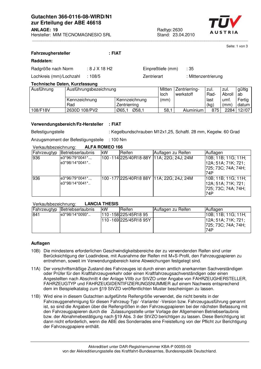 • Stimmt die KBA-Nummer auf der Felge mit diesem Dokument überein?