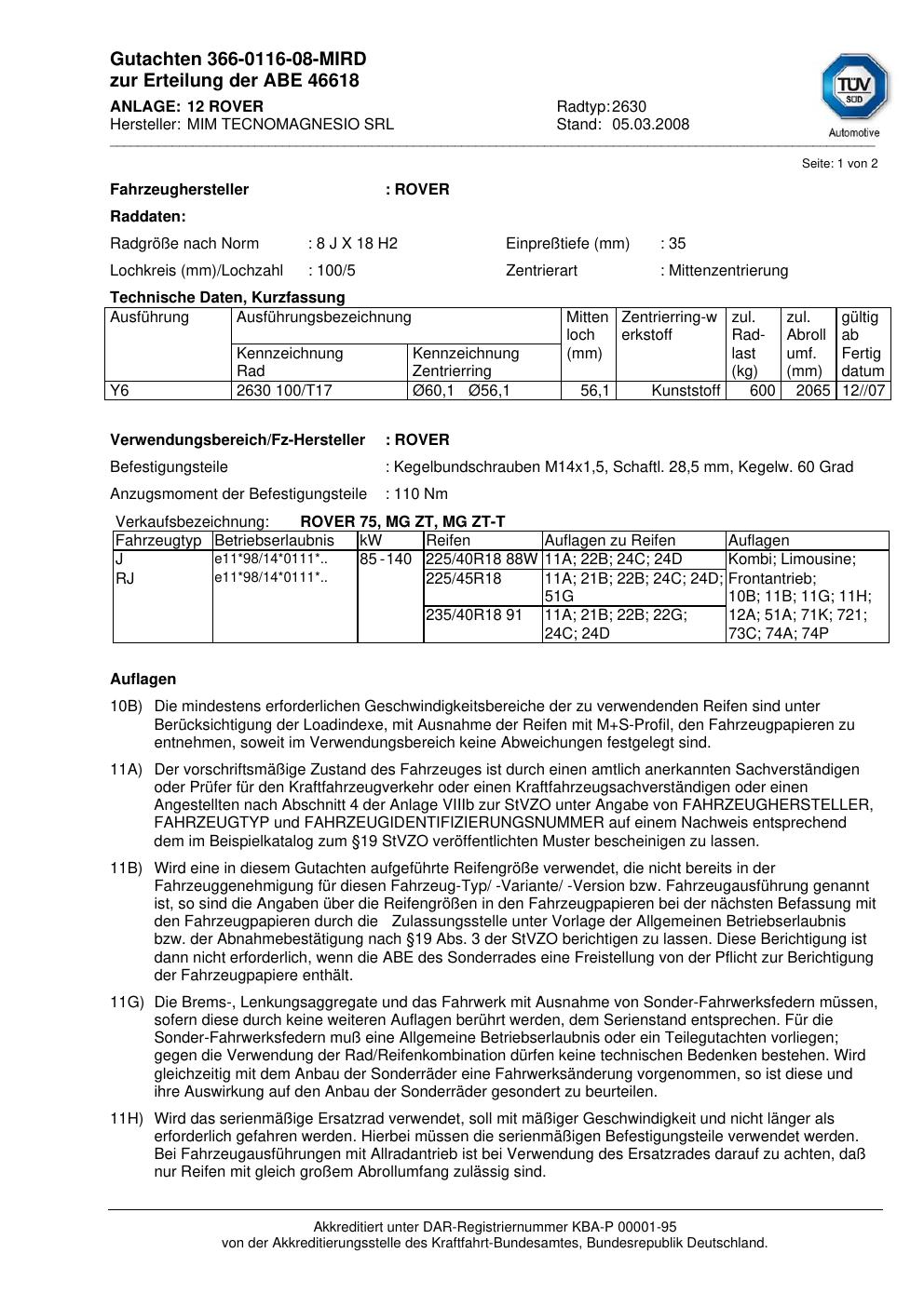 Dieses abe gehört zur Felge MIM 2630 in ET0 mit KBA 46618. Die Seite ist dafür gedacht, dass du schnell prüfen kannst, ob KBA, Design und Größe zu deiner Felge passen und danach direkt das richtige PDF lädst.