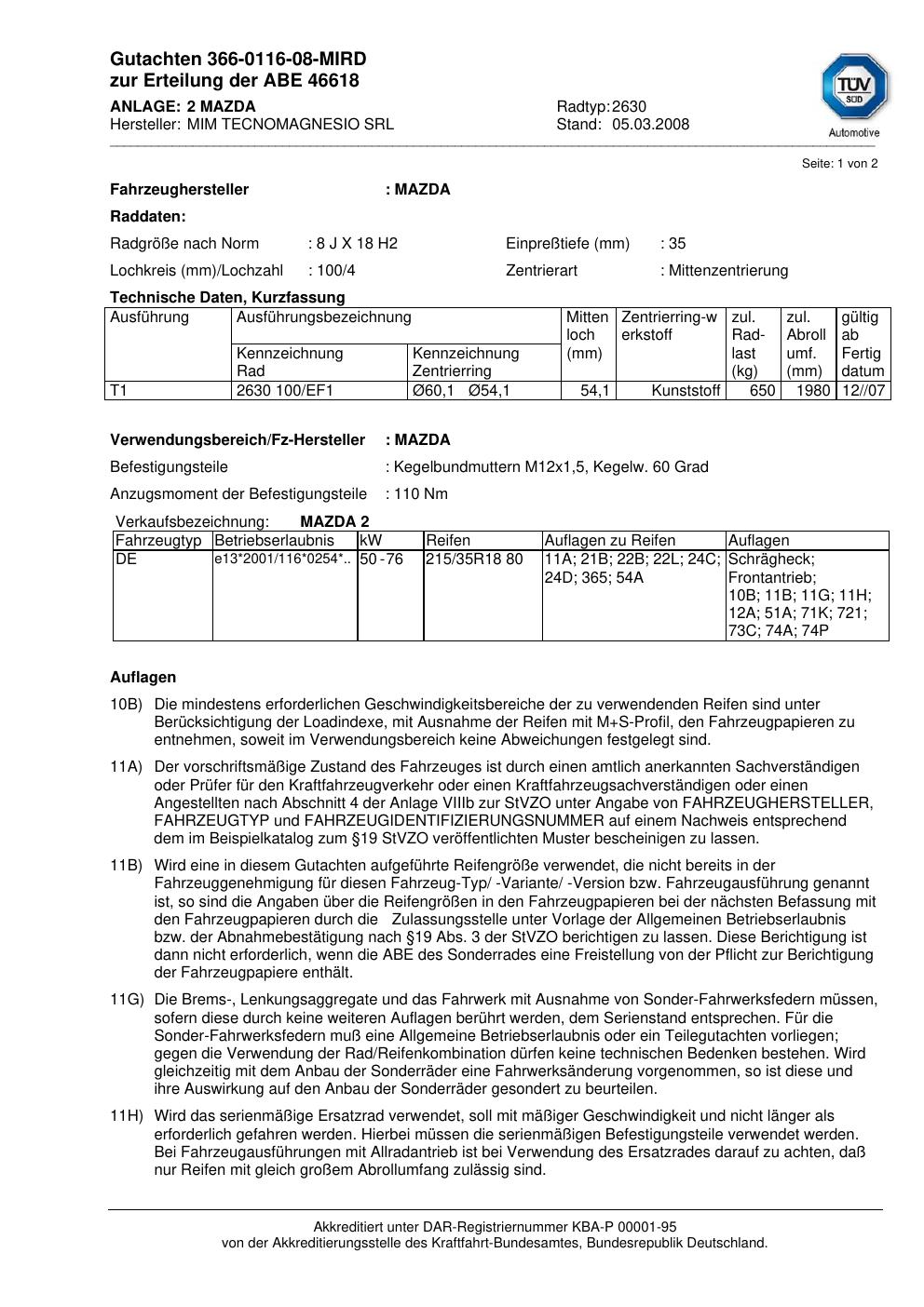 • Stimmt die KBA-Nummer auf der Felge mit diesem Dokument überein?