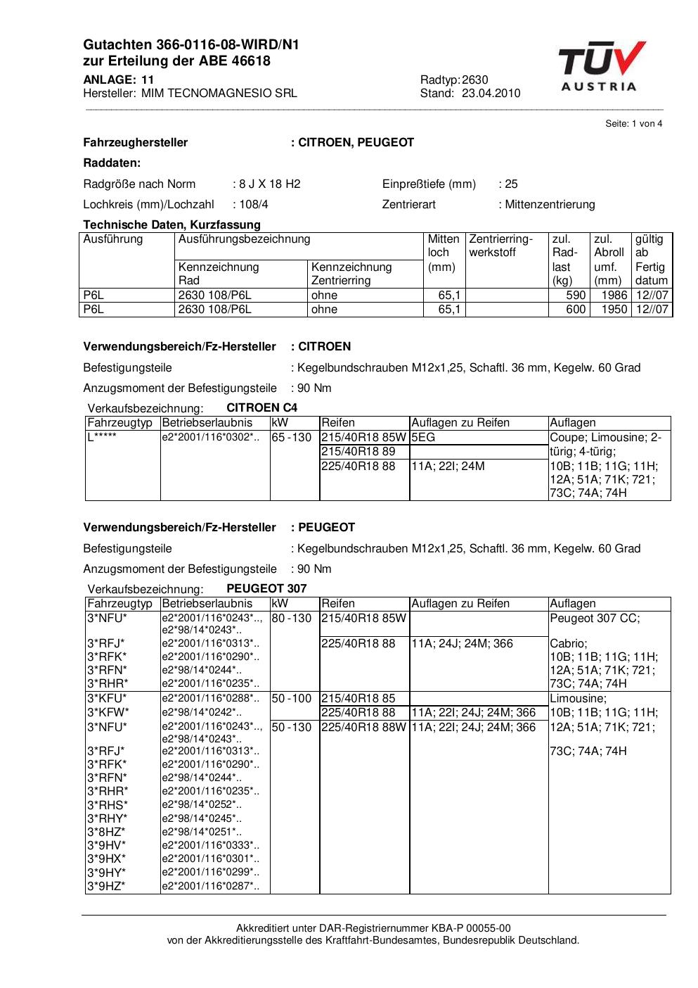 • Stimmt die KBA-Nummer auf der Felge mit diesem Dokument überein?