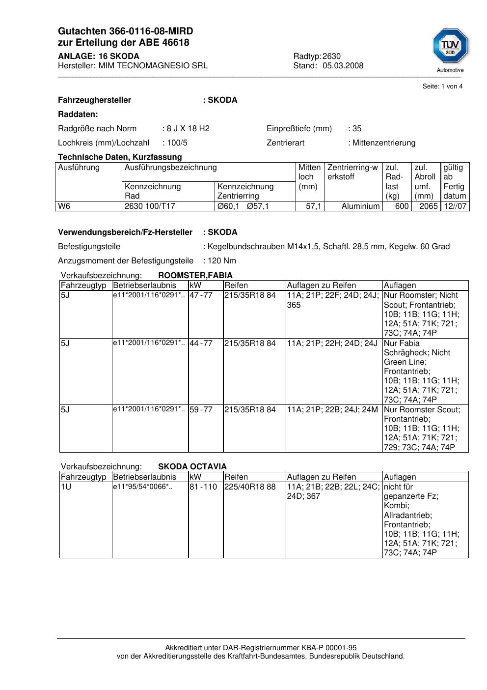 • Stimmt die KBA-Nummer auf der Felge mit diesem Dokument überein?