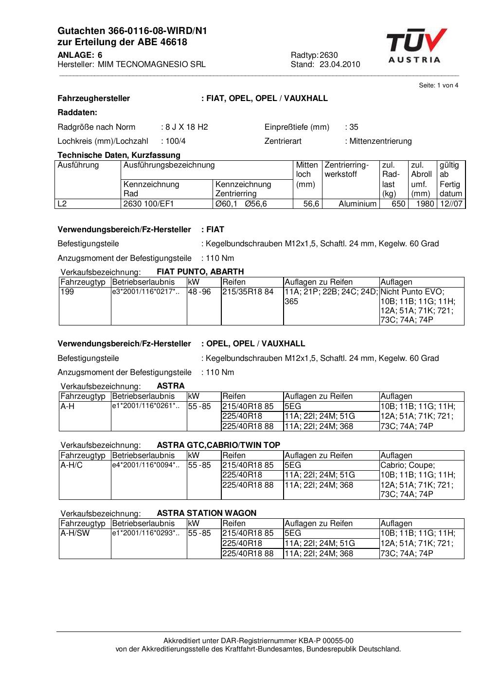 Dieses abe gehört zur Felge MIM 2630 in ET0 mit KBA 46618. Die Seite ist dafür gedacht, dass du schnell prüfen kannst, ob KBA, Design und Größe zu deiner Felge passen und danach direkt das richtige PDF lädst.