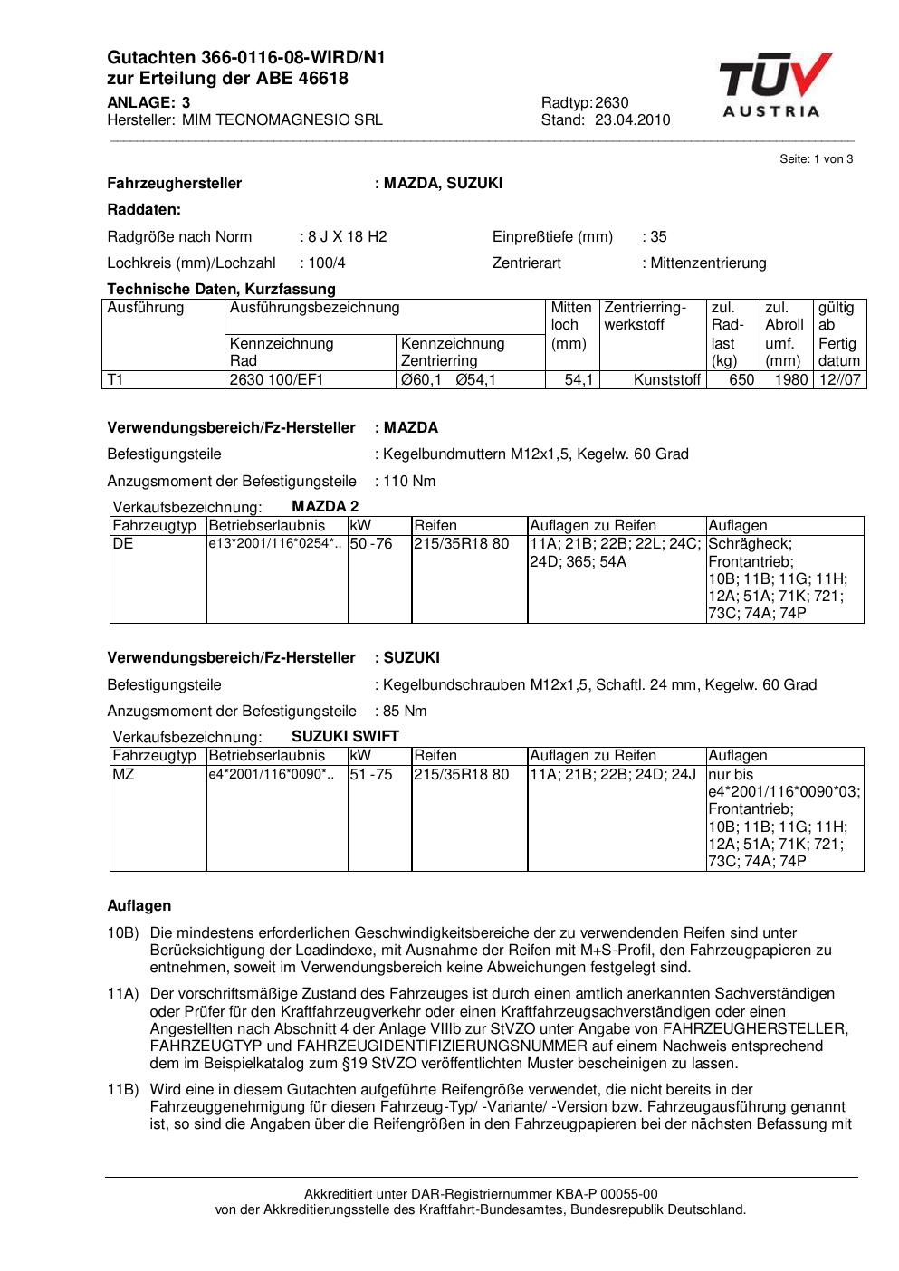 Dieses abe gehört zur Felge MIM 2630 in ET0 mit KBA 46618. Die Seite ist dafür gedacht, dass du schnell prüfen kannst, ob KBA, Design und Größe zu deiner Felge passen und danach direkt das richtige PDF lädst.