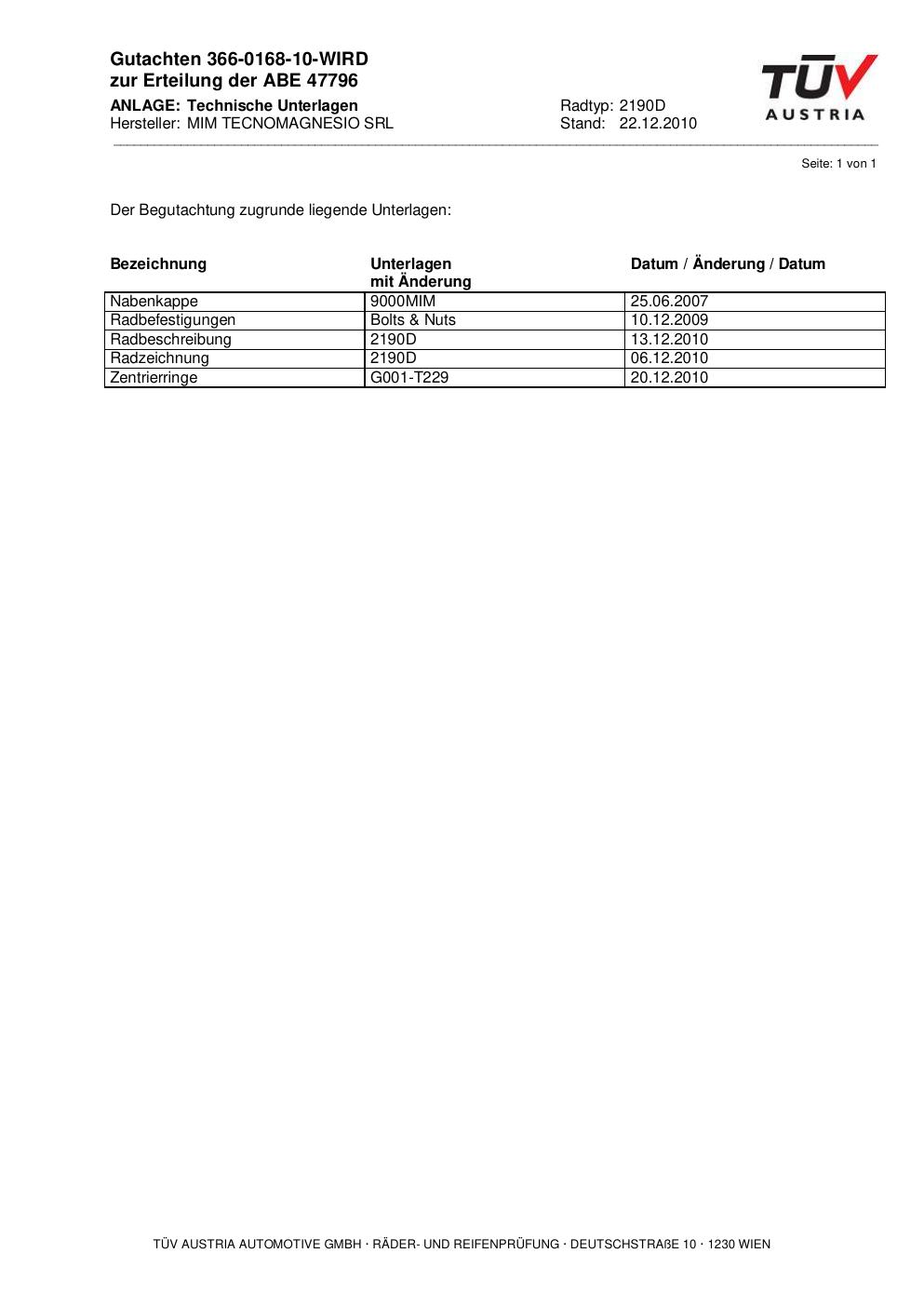 Dieses abe der Marke MIM stammt vom jeweiligen Hersteller, Importeur oder einer Prüforganisation. Felgengutachten.de beansprucht hieran keine eigenen Urheber-, Nutzungs- oder sonstigen Schutzrechte. Soweit das Dokument urheber- oder leistungsschutzrechtlich geschützt ist, verbleiben die Rechte beim jeweiligen Rechteinhaber. Die Bereitstellung erfolgt ausschließlich zu Informationszwecken für Endnutzer, z. B. zur Vorlage bei Prüfstellen oder zur eigenen Fahrzeugdokumentation.
