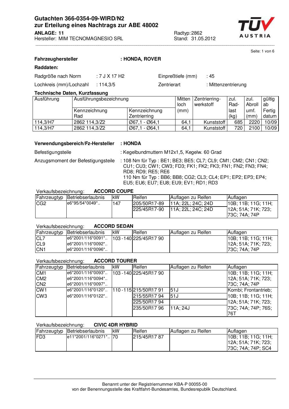 Dieses abe der Marke MIM stammt vom jeweiligen Hersteller, Importeur oder einer Prüforganisation. Felgengutachten.de beansprucht hieran keine eigenen Urheber-, Nutzungs- oder sonstigen Schutzrechte. Soweit das Dokument urheber- oder leistungsschutzrechtlich geschützt ist, verbleiben die Rechte beim jeweiligen Rechteinhaber. Die Bereitstellung erfolgt ausschließlich zu Informationszwecken für Endnutzer, z. B. zur Vorlage bei Prüfstellen oder zur eigenen Fahrzeugdokumentation.