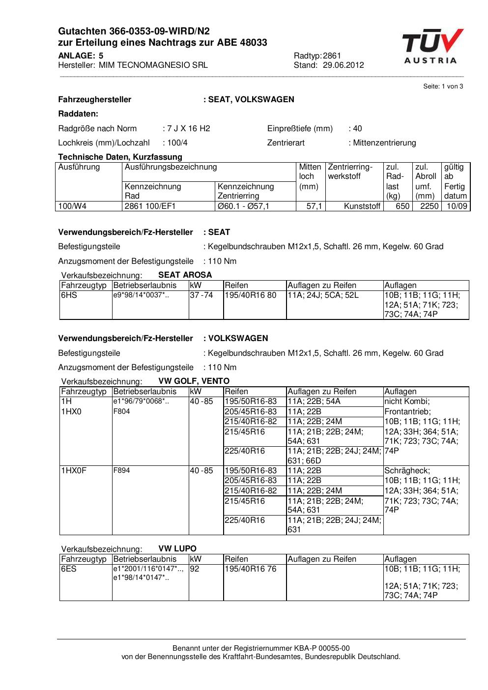 Dieses abe der Marke MIM stammt vom jeweiligen Hersteller, Importeur oder einer Prüforganisation. Felgengutachten.de beansprucht hieran keine eigenen Urheber-, Nutzungs- oder sonstigen Schutzrechte. Soweit das Dokument urheber- oder leistungsschutzrechtlich geschützt ist, verbleiben die Rechte beim jeweiligen Rechteinhaber. Die Bereitstellung erfolgt ausschließlich zu Informationszwecken für Endnutzer, z. B. zur Vorlage bei Prüfstellen oder zur eigenen Fahrzeugdokumentation.