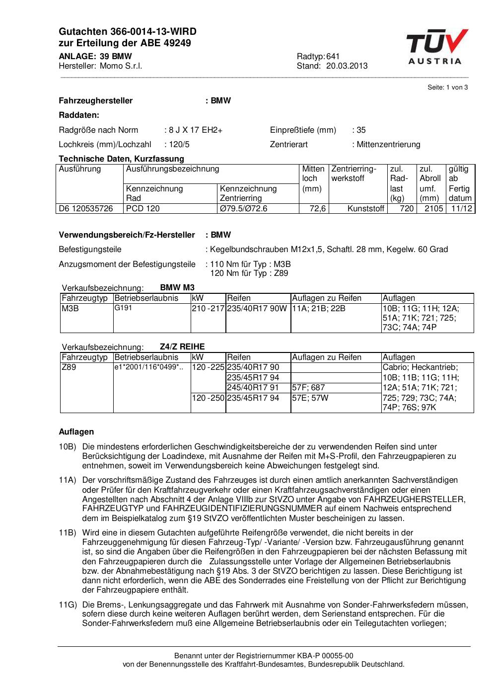 • Stimmt die KBA-Nummer auf der Felge mit diesem Dokument überein?