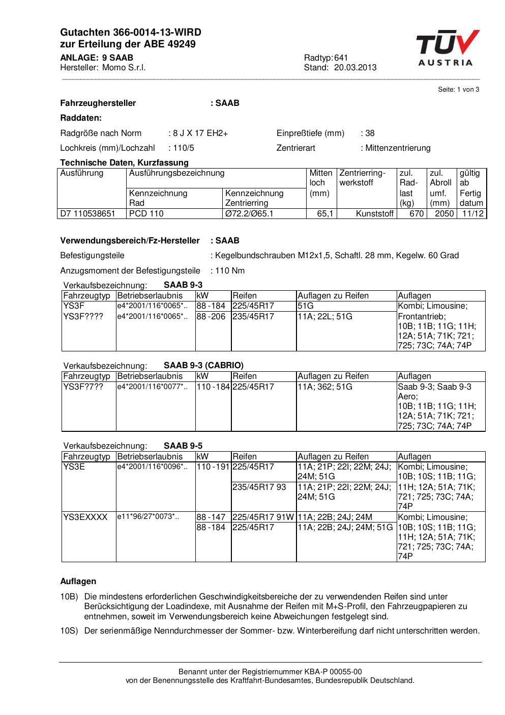• Stimmt die KBA-Nummer auf der Felge mit diesem Dokument überein?