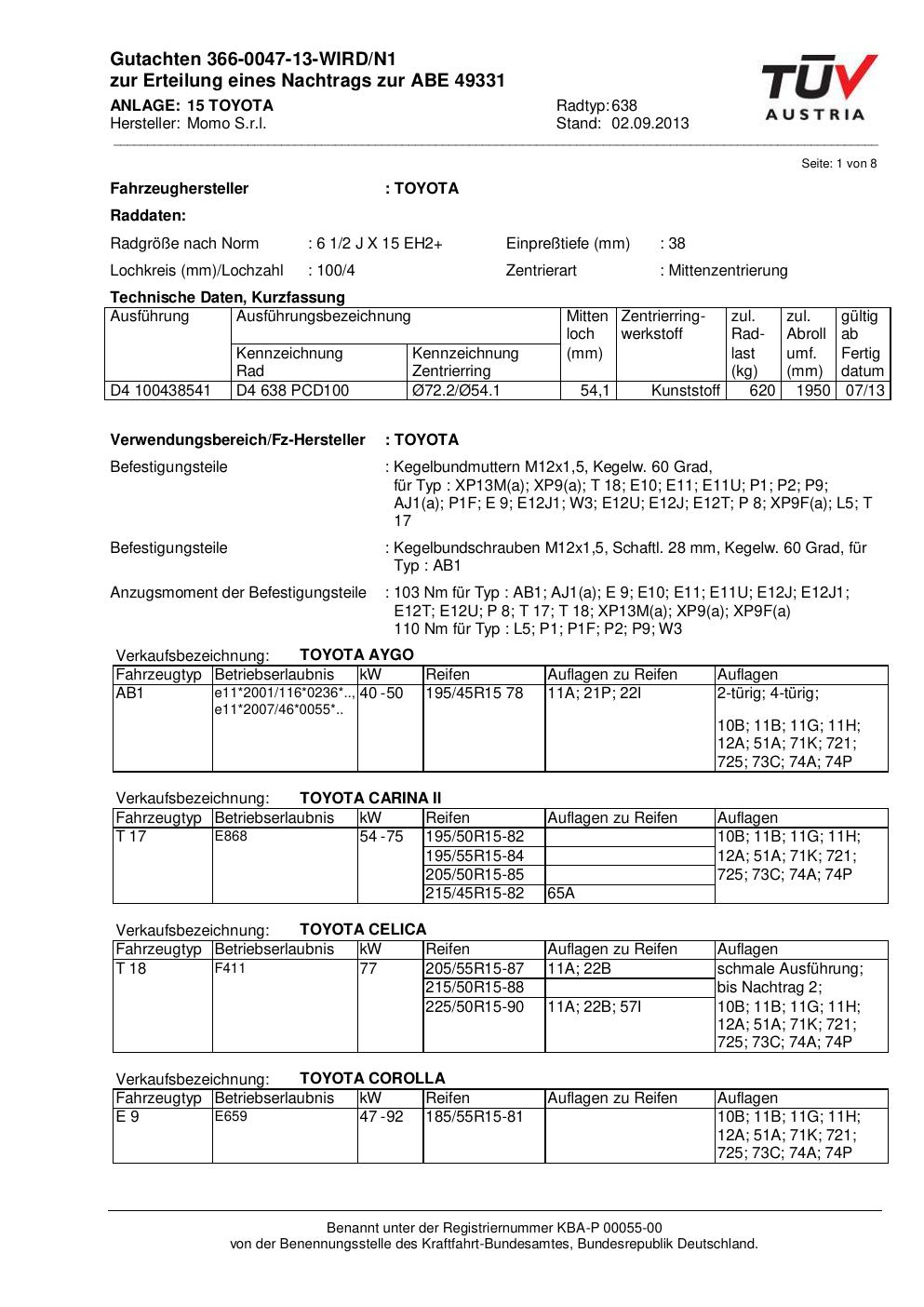 • Stimmt die KBA-Nummer auf der Felge mit diesem Dokument überein?