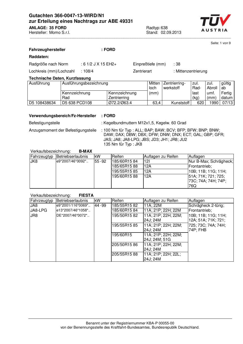 • Stimmt die KBA-Nummer auf der Felge mit diesem Dokument überein?