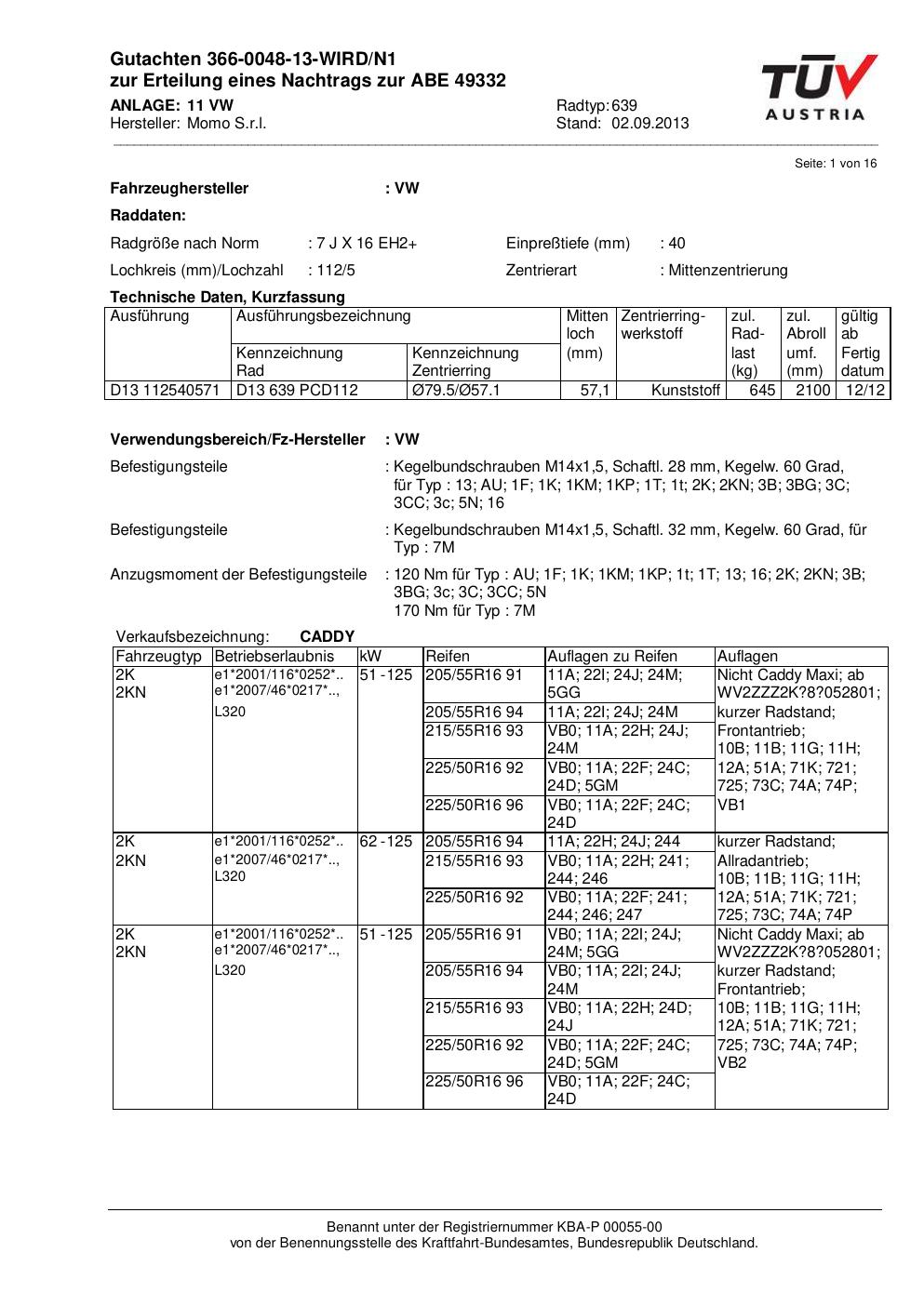 Dieses ABE gehört zur Felge Momo EUROPE in 7Jx16 ET0 mit KBA 49332. Die Seite ist dafür gedacht, dass du schnell prüfen kannst, ob KBA, Design und Größe zu deiner Felge passen und danach direkt das richtige PDF lädst.