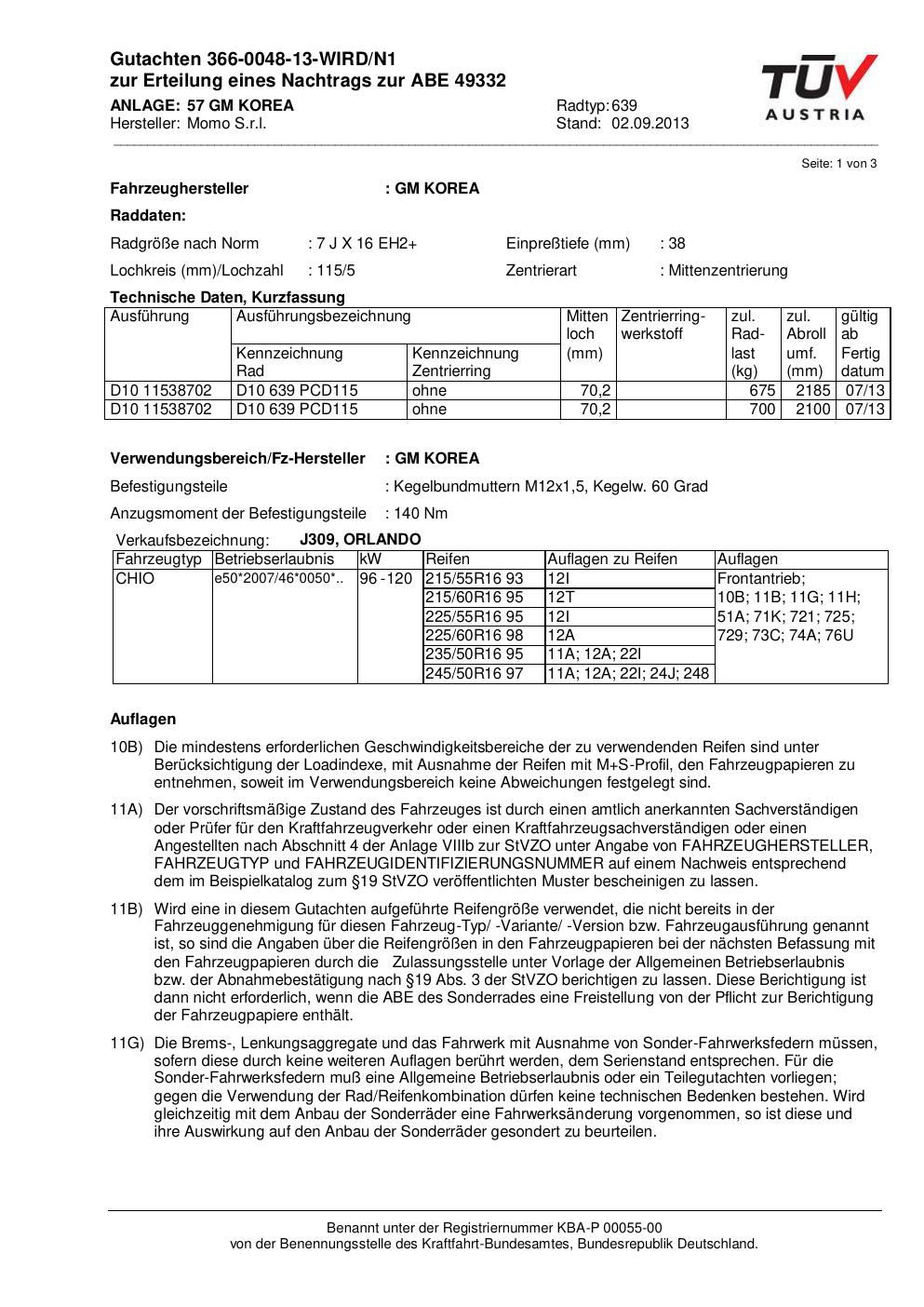 Felgengutachten / ABE für Alufelgen Momo EUROPE (7Jx16 ET 0, Mittenloch 0 mm) mit KBA 49332 (Zertifikatsnummer 366-0048-13-WIRD/N1__Anlage_57). Hier kostenlos als PDF herunterladen. Der Download-Link ist 24 Stunden gültig und kann bis zu zwei Mal verwendet werden.