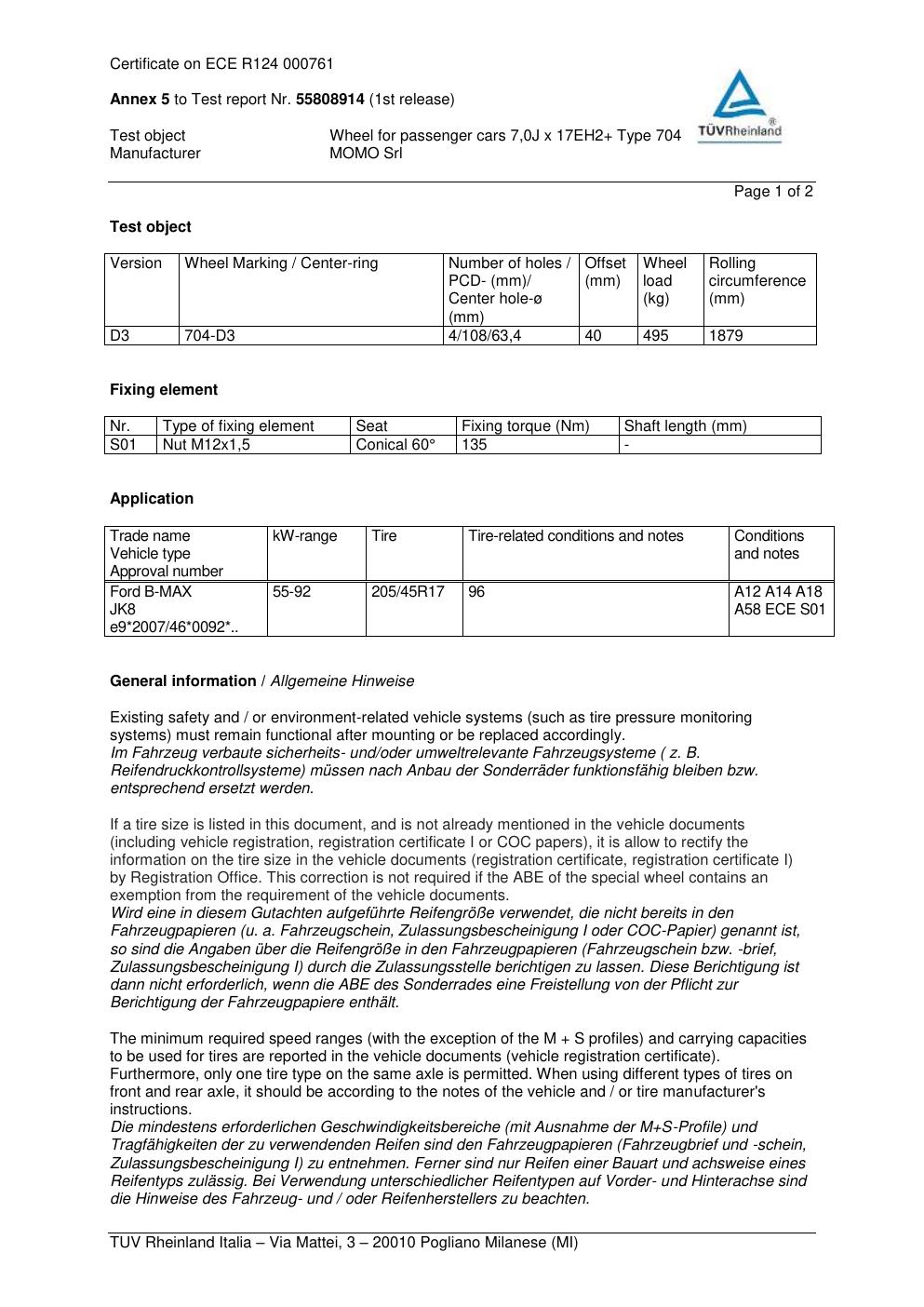 Felgengutachten / ABE für Alufelgen Momo HYPERSTAR (7Jx17 ET 0, Mittenloch 0 mm) mit KBA 000761 (Zertifikatsnummer 55808914__Anlage_4). Hier kostenlos als PDF herunterladen. Der Download-Link ist 24 Stunden gültig und kann bis zu zwei Mal verwendet werden.