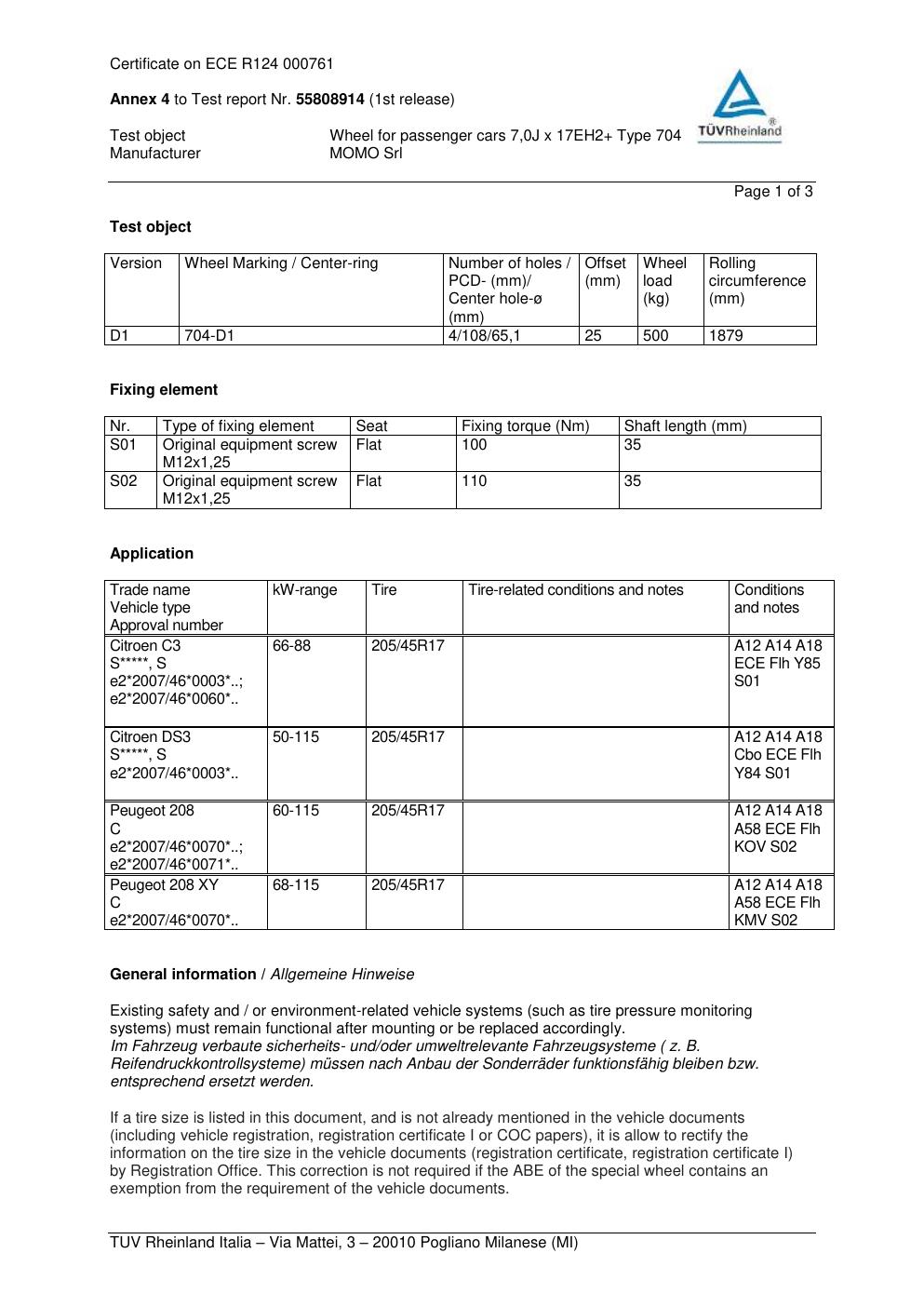 Felgengutachten / ABE für Alufelgen Momo HYPERSTAR (7Jx17 ET 0, Mittenloch 0 mm) mit KBA 000761 (Zertifikatsnummer 55808914__Anlage_6). Hier kostenlos als PDF herunterladen. Der Download-Link ist 24 Stunden gültig und kann bis zu zwei Mal verwendet werden.