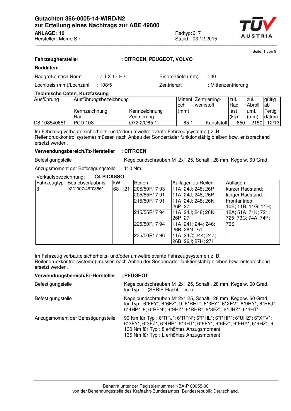 • Stimmt die KBA-Nummer auf der Felge mit diesem Dokument überein?