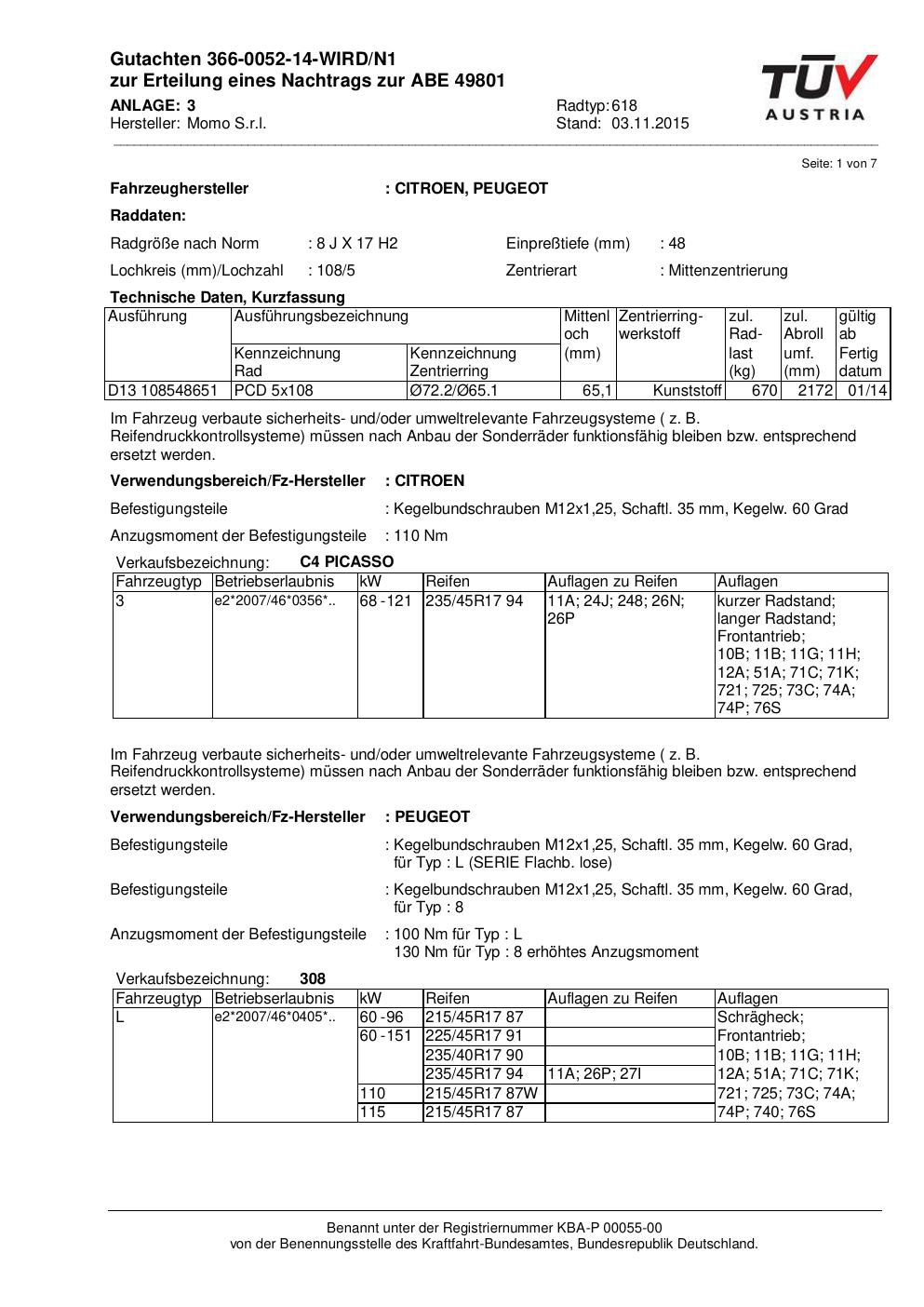 • Stimmt die KBA-Nummer auf der Felge mit diesem Dokument überein?