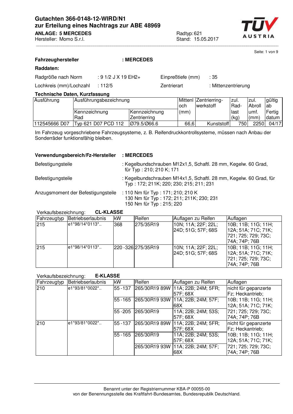 Dieses ABE gehört zur Felge Momo QUANTUM in 9.5Jx19 ET0 mit KBA 48969. Die Seite ist dafür gedacht, dass du schnell prüfen kannst, ob KBA, Design und Größe zu deiner Felge passen und danach direkt das richtige PDF lädst.