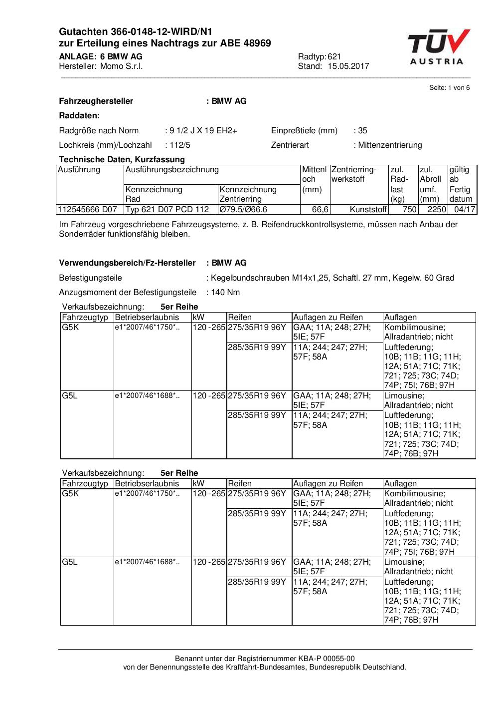 • Stimmt die KBA-Nummer auf der Felge mit diesem Dokument überein?