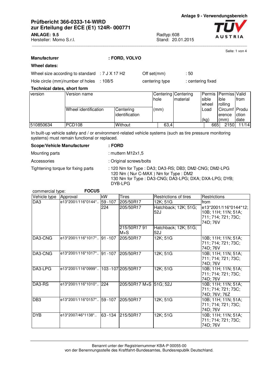 Dieses Gutachten (ECE) bezieht sich auf die Alufelge Momo REVENGE in der Ausführung 7Jx17 ET 0, Mittenloch 0 mm (KBA 000771). Im PDF findest du typischerweise zulässige Reifengrößen, Auflagen/Anbauhinweise und – je nach Dokument – Hinweise zur Eintragung.