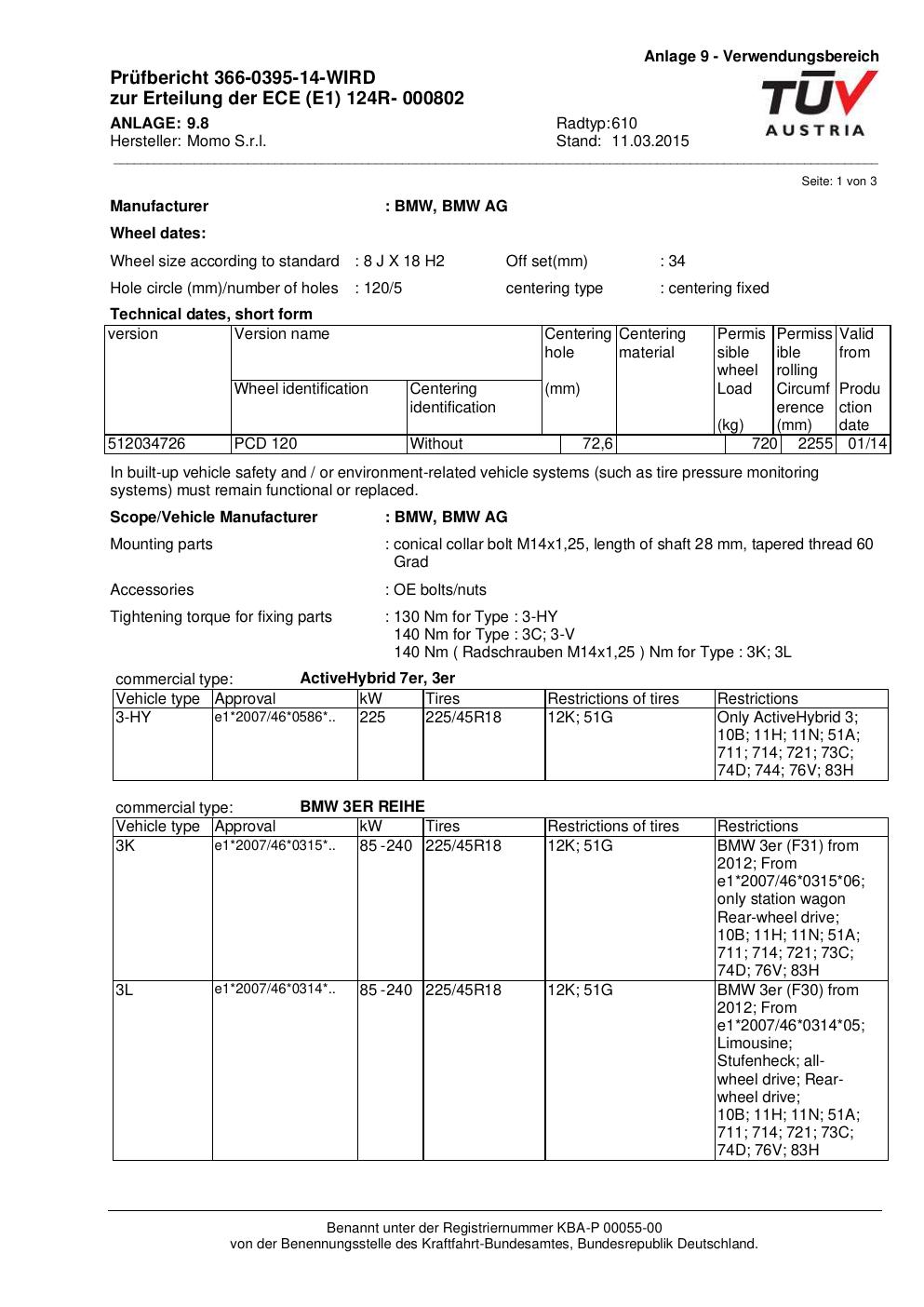 Felgengutachten / ECE für Alufelgen Momo REVENGE (8Jx18 ET 0, Mittenloch 0 mm) mit KBA 000802 (Zertifikatsnummer 366-0395-14-WIRD__Anlage_8). Hier kostenlos als PDF herunterladen. Der Download-Link ist 24 Stunden gültig und kann bis zu zwei Mal verwendet werden.