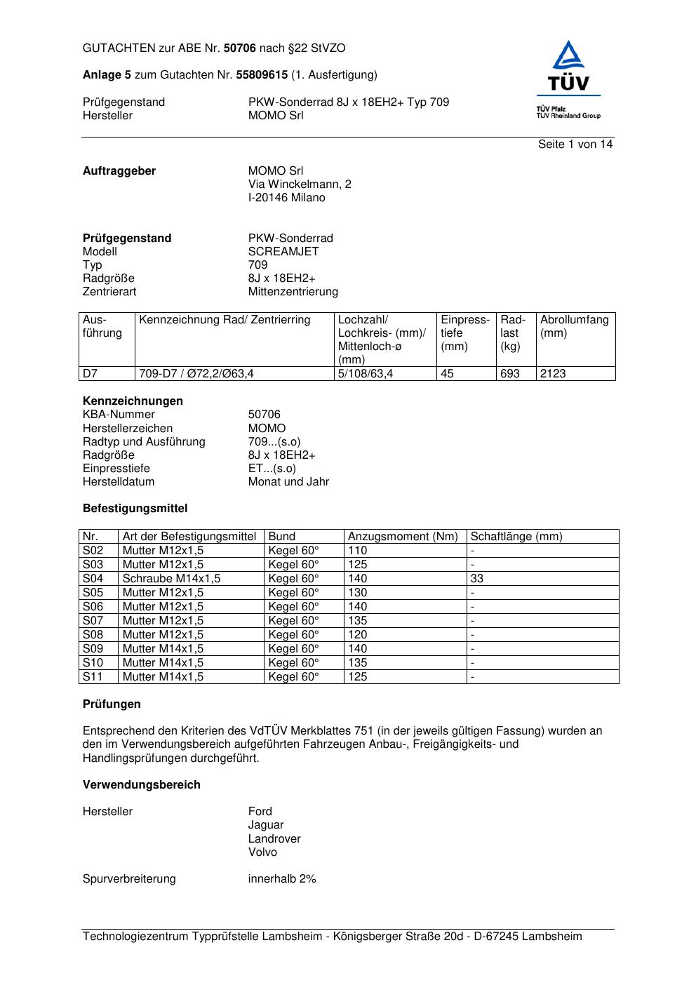 Dieses ABE gehört zur Felge Momo SCREAMJET in 8Jx18 ET0 mit KBA 50706. Die Seite ist dafür gedacht, dass du schnell prüfen kannst, ob KBA, Design und Größe zu deiner Felge passen und danach direkt das richtige PDF lädst.