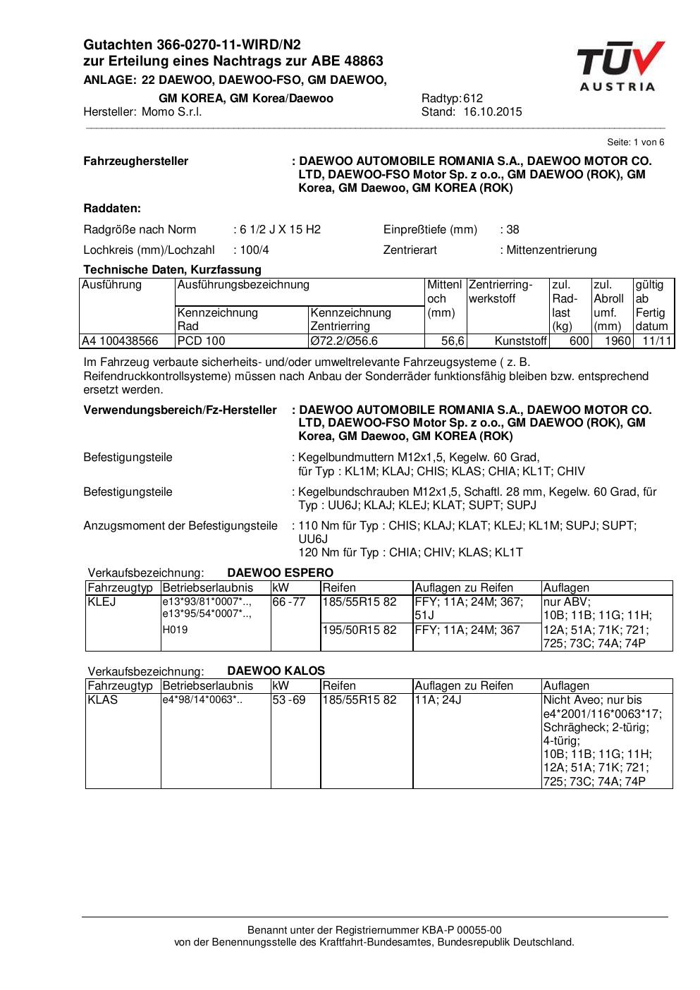 Dieses ABE gehört zur Felge Momo WIN_PRO in 6.5Jx15 ET0 mit KBA 48863. Die Seite ist dafür gedacht, dass du schnell prüfen kannst, ob KBA, Design und Größe zu deiner Felge passen und danach direkt das richtige PDF lädst.