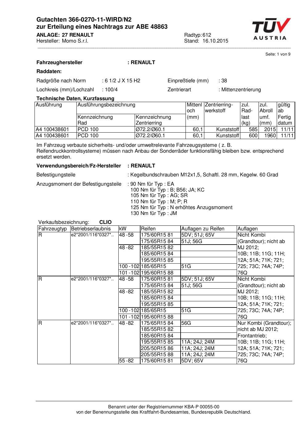 • Stimmt die KBA-Nummer auf der Felge mit diesem Dokument überein?