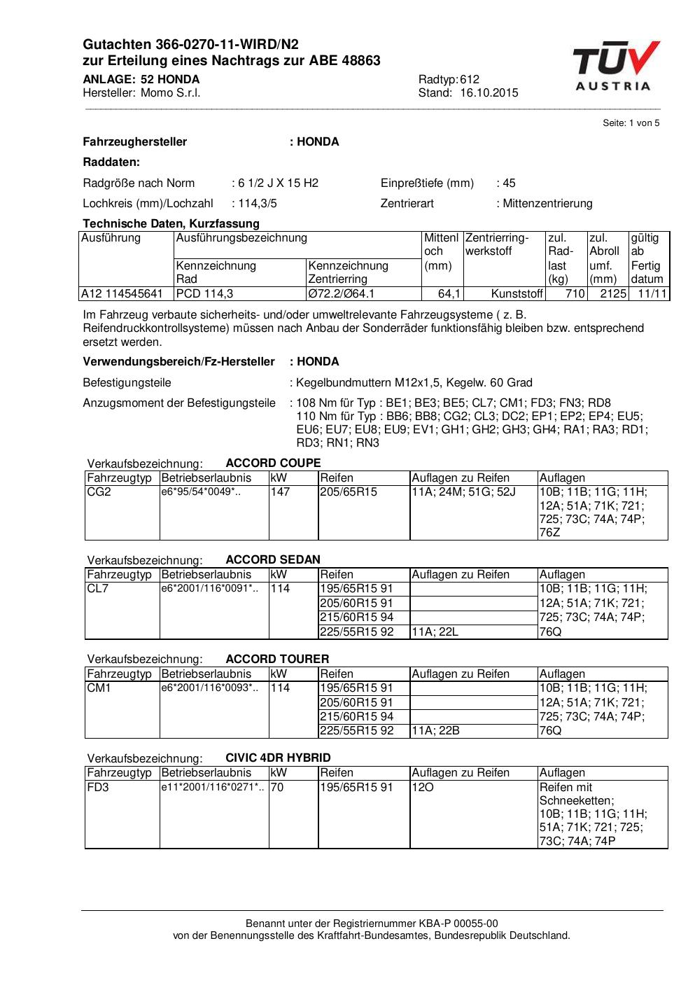 Dieses ABE gehört zur Felge Momo WIN_PRO in 6.5Jx15 ET0 mit KBA 48863. Die Seite ist dafür gedacht, dass du schnell prüfen kannst, ob KBA, Design und Größe zu deiner Felge passen und danach direkt das richtige PDF lädst.