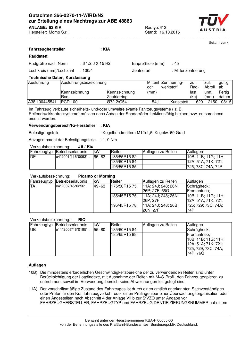 • Stimmt die KBA-Nummer auf der Felge mit diesem Dokument überein?