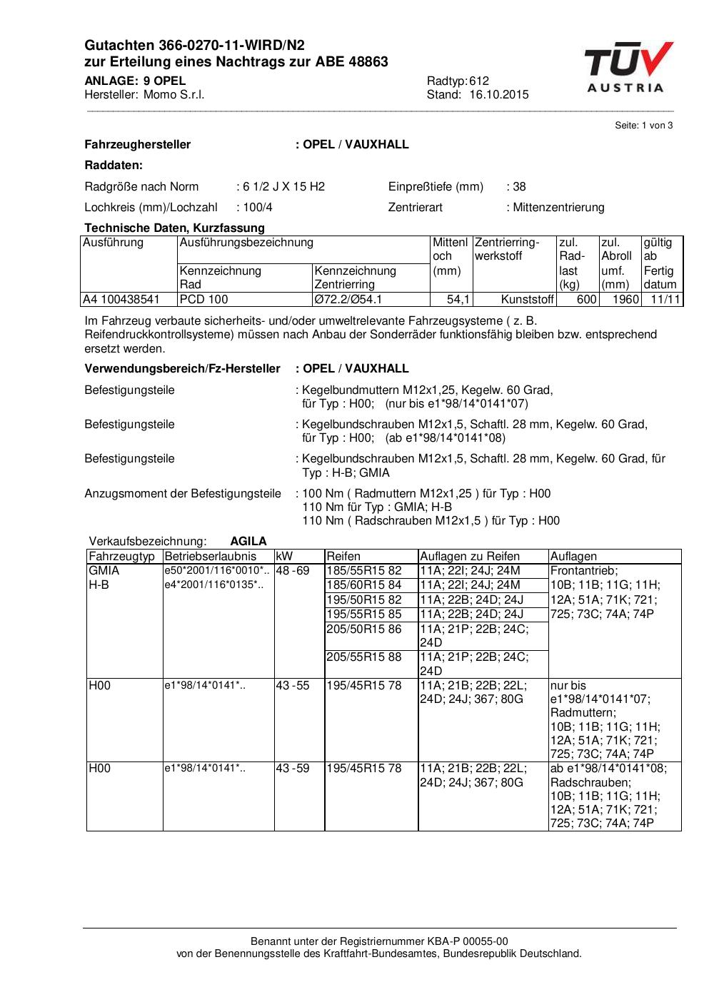 Felgengutachten / ABE für Alufelgen Momo WIN_PRO (6.5Jx15 ET 0, Mittenloch 0 mm) mit KBA 48863 (Zertifikatsnummer 366-0270-11-WIRD/N2__Anlage_9). Hier kostenlos als PDF herunterladen. Der Download-Link ist 24 Stunden gültig und kann bis zu zwei Mal verwendet werden.