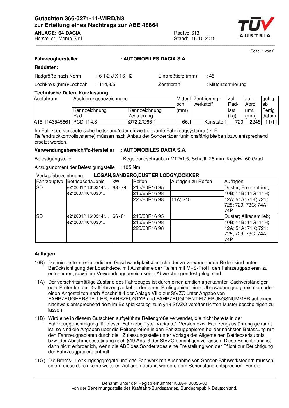 • Stimmt die KBA-Nummer auf der Felge mit diesem Dokument überein?