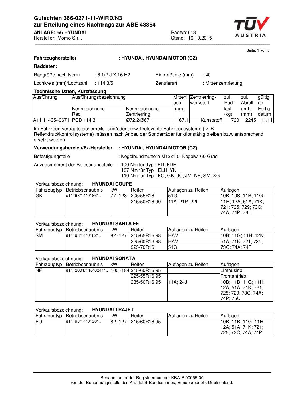 Dieses ABE gehört zur Felge Momo WIN_PRO in 6.5Jx16 ET0 mit KBA 48864. Die Seite ist dafür gedacht, dass du schnell prüfen kannst, ob KBA, Design und Größe zu deiner Felge passen und danach direkt das richtige PDF lädst.
