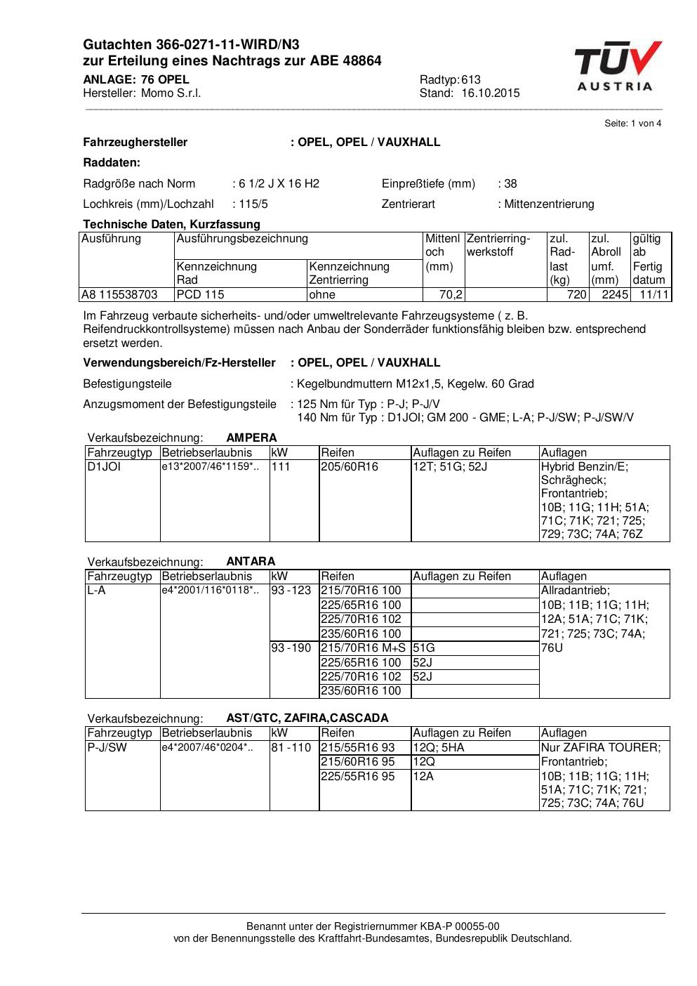 Felgengutachten / ABE für Alufelgen Momo WIN_PRO (6.5Jx16 ET 0, Mittenloch 0 mm) mit KBA 48864 (Zertifikatsnummer 366-0271-11-WIRD/N3__Anlage_76). Hier kostenlos als PDF herunterladen. Der Download-Link ist 24 Stunden gültig und kann bis zu zwei Mal verwendet werden.