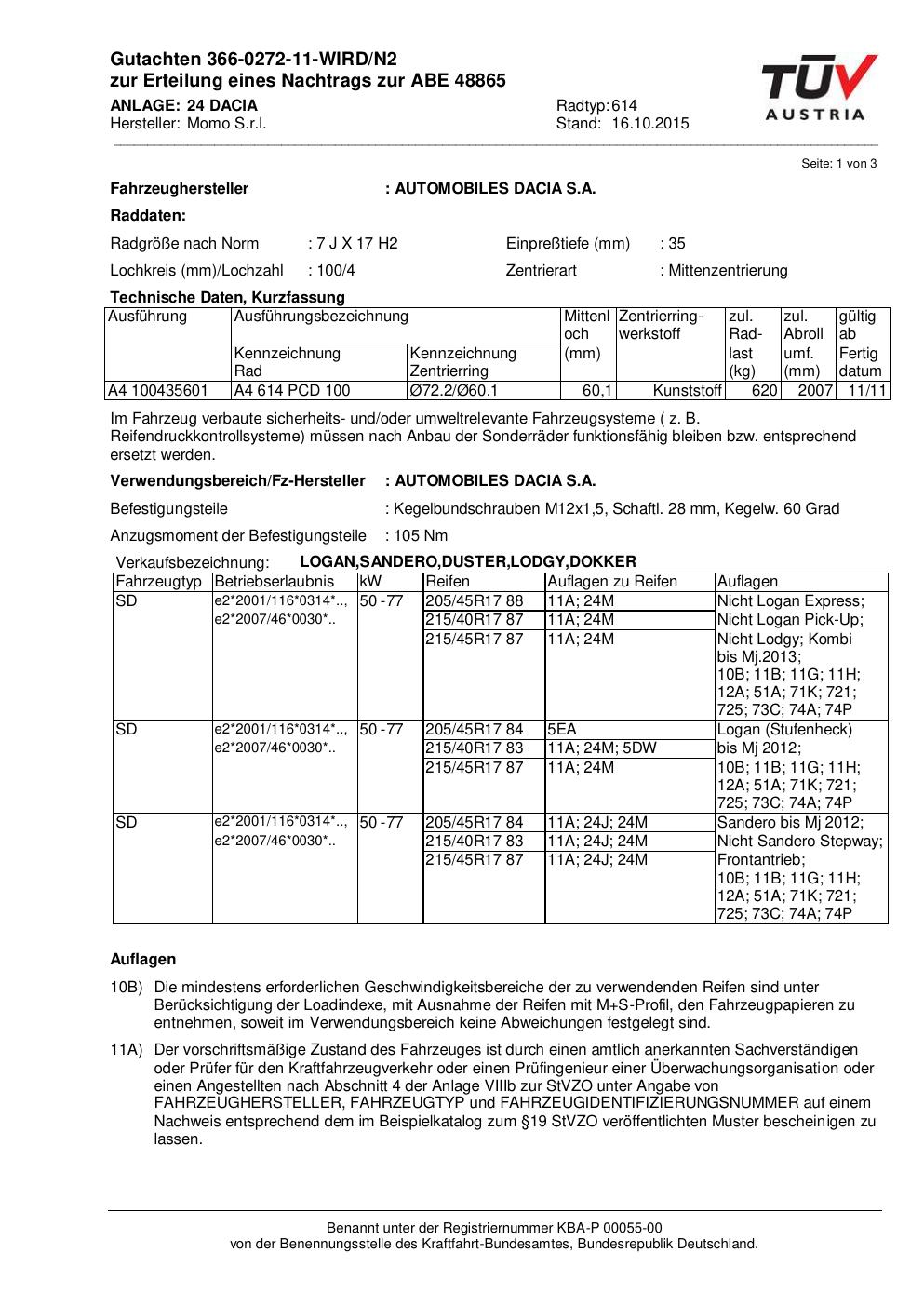 • Stimmt die KBA-Nummer auf der Felge mit diesem Dokument überein?