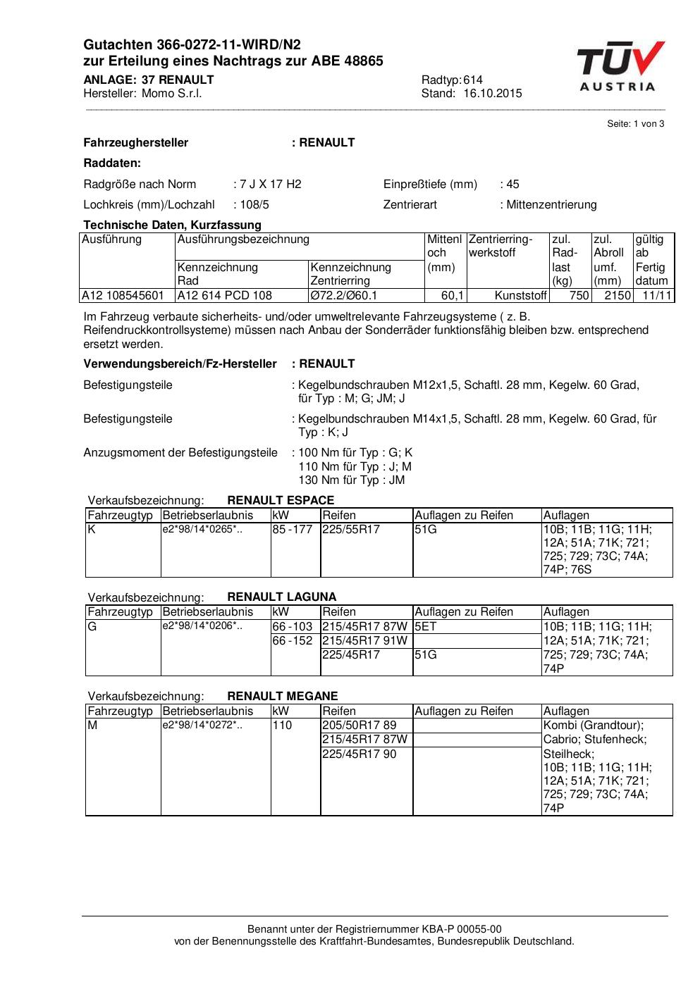 • Stimmt die KBA-Nummer auf der Felge mit diesem Dokument überein?