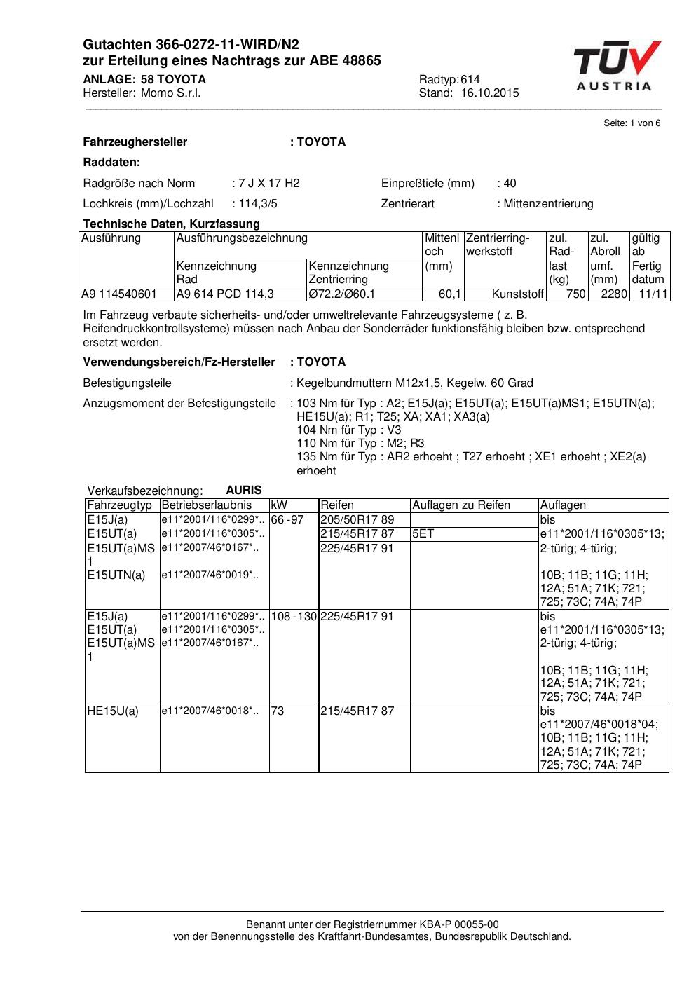 Dieses ABE gehört zur Felge Momo WIN_PRO in 7Jx17 ET0 mit KBA 48865. Die Seite ist dafür gedacht, dass du schnell prüfen kannst, ob KBA, Design und Größe zu deiner Felge passen und danach direkt das richtige PDF lädst.