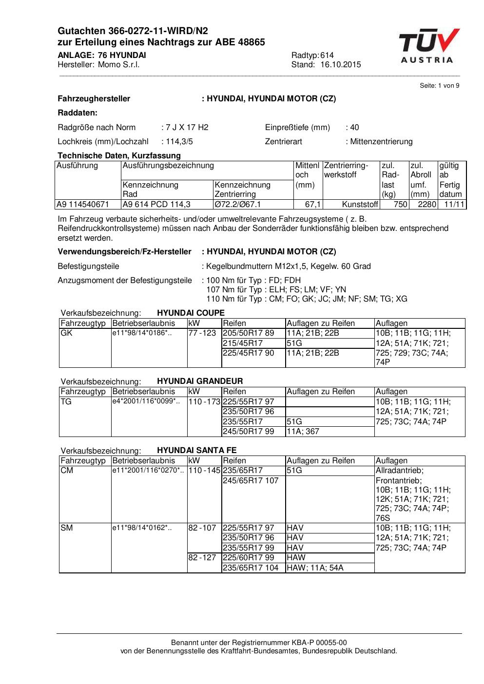 • Stimmt die KBA-Nummer auf der Felge mit diesem Dokument überein?